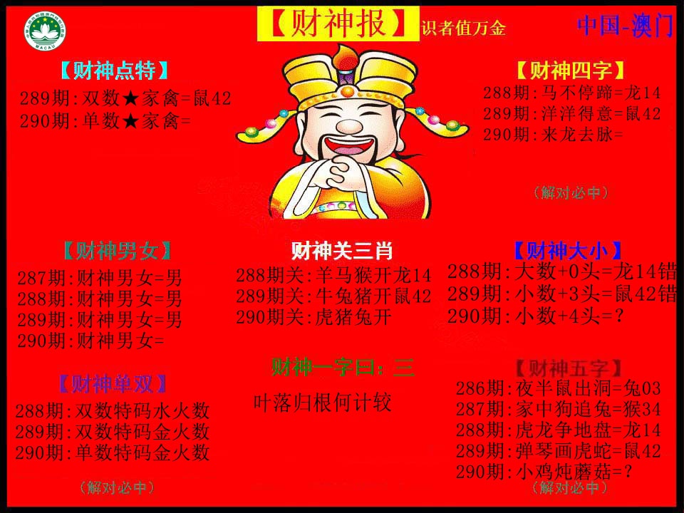 287期:推荐【鼠龙鸡猴】今期一定准 |
